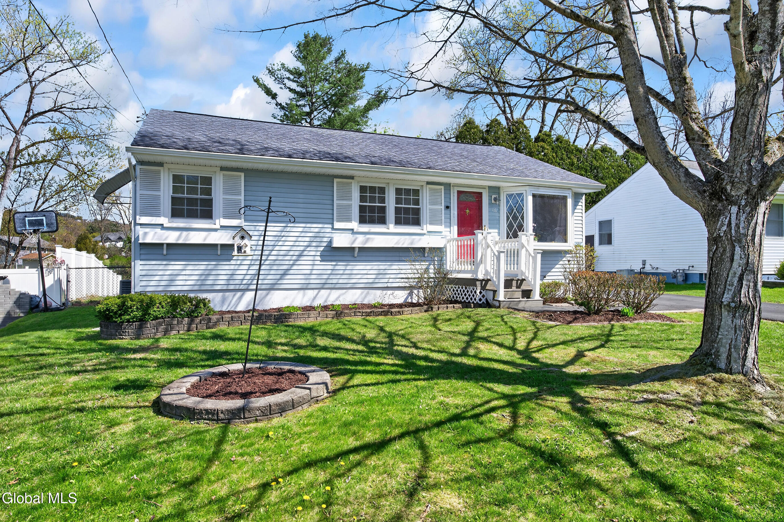 Picture-perfect curb appeal meets a updated, move-in ready home with an in-ground pool, efficient layout, modern finishes, and strong overall value. Beautifully refreshed, this one story Ranch home features fresh paint, refinished hardwood floors, updated light fixtures, and new flooring in the kitchen, primary and full bath, delivering a clean, modern feel. Natural light fills the space, and the layout lives larger than expected, making everyday living feel easy and functional. The main living area offers a living room highlighted by a picture bay window, complemented by three bedrooms and a full bath. The updated kitchen, complete with solid surface counters and stainless steel appliances connects effortlessly to the living space, perfect for everyday living and casual entertaining. Step outside and enjoy a backyard with an in-ground pool, freshly stained deck, and landscaped surroundings. A partially finished basement with an updated half bath provides flexible bonus space for a rec room, home office, or additional living area. Turnkey condition, efficient living, and strong overall value. Welcome Home! *Some images are virtually staged